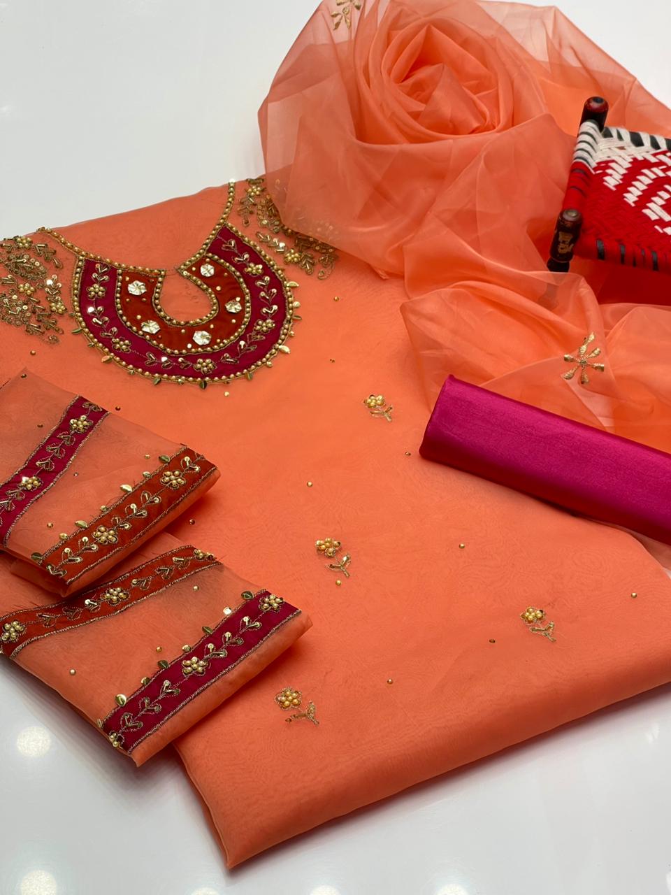 ✅ Handmade + Aari Zari beeds and gota work Applic Shirt